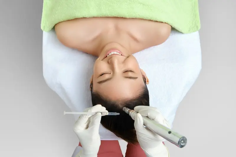 treatment dengan alat dermapen (microneedling) untuk meresapkan serum pertumbuhan rambut untuk memperkuat akar dan merangsang pertumbuhan rambutmu