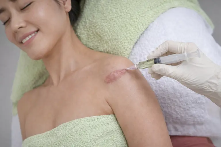 Perawatan medis dengan melakukan injeksi untuk mengatasi keloid yang ada pada tubuhmu
